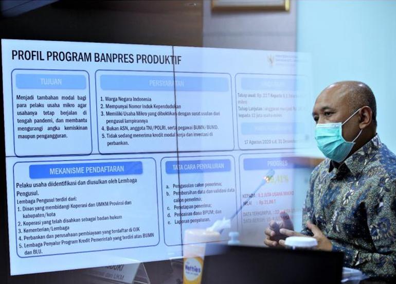 “Saat ini Pemerintah melalui Kementerian Koperasi dan UKM mempunyai program Pemulihan Ekonomi Nasional (PEN) telah memberikan stimulus sebesar Rp123,46 triliun kepada Koperasi dan UMKM agar tetap dapat bertahan di tengah pandemi Covid-19. BanPres Produktif untuk Usaha Mikro (BPUM) juga telah diluncurkan dengan sasaran kepada 12 juta pelaku usaha mikro berupa hibah modal kerja sebesar Rp2,4 juta per orang telah tersalurkan 100% serta KUR Super Mikro untuk plafon di bawah Rp10 Juta dengan bunga 0%,” jelasnya.