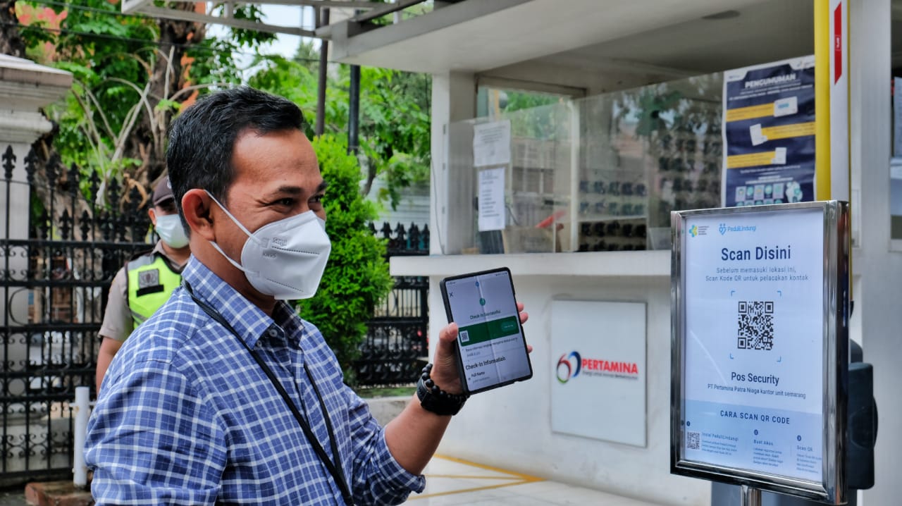 PT. Pertamina Patra Niaga Regional Jawa Bagian Tengah mengambil inisiatif sebagai pelopor dalam penerapan QR Code Aplikasi PeduliLindungi di lingkungan Pertamina Group.