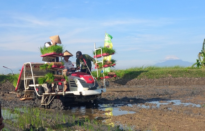 Demak – Hamparan sawah di Kecamatan Karangtengah kembali dipenuhi aktivitas. Deru mesin tanam padi terdengar berpadu dengan canda tawa para petani yang berkumpul, Rabu 27 Agustus 2025.