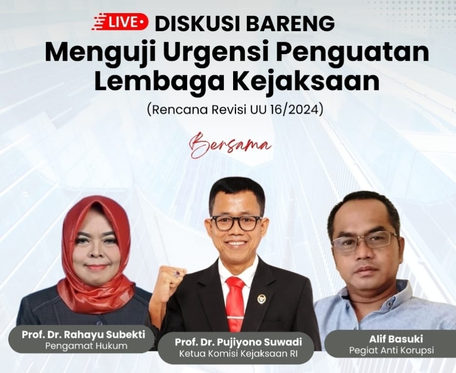 Pujiyono mengungkapkan hal tersebut dalam diskusi yang digelar oleh Lembaga Jarcomm di Kota Surakarta, bertema “Menguji Urgensi Penguatan Lembaga Kejaksaan terhadap Revisi UU No. 16 Tahun 2004 tentang Kejaksaan” pada Selasa (11/2).