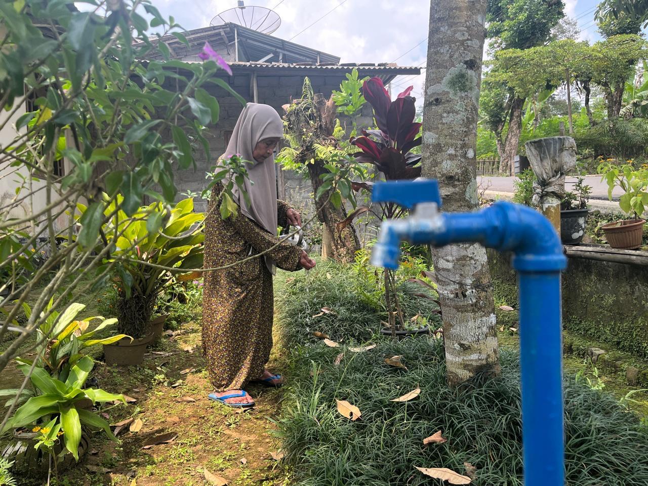 Darsijah memanfaatkan air dari SPAM untuk kebutuhan sehari-hari. Seperti mandi, masak, cuci perabot, hingga menyiram tanaman bunga di halaman rumahnya.
