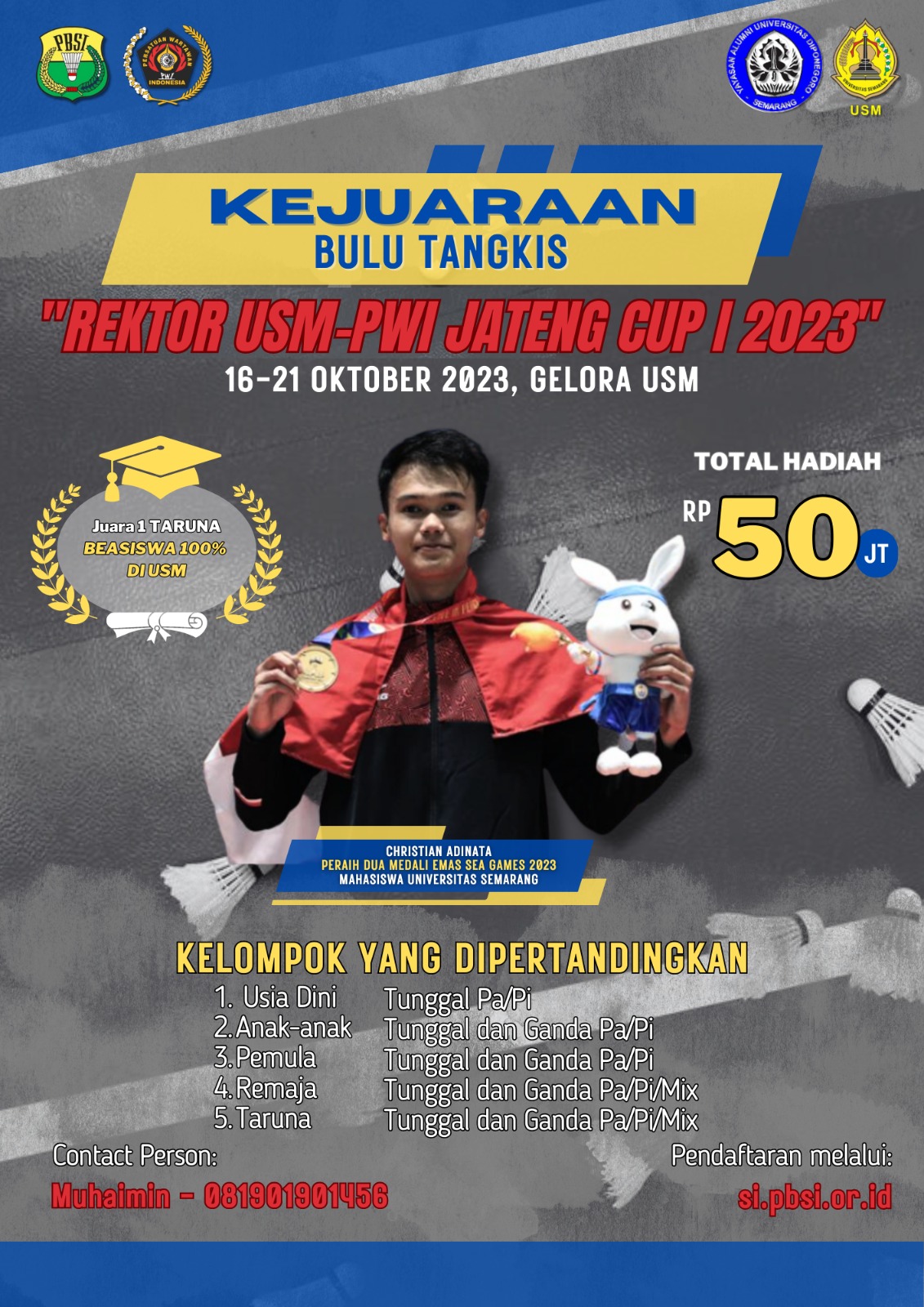 ”Kami berharap, melalui kejuaraan ini akan lahir atlet-atlet andal yang mampu mengharumkan nama Indonesia di event internasional seperti Christian Adinata yang berhasil menyumbangkan dua medali emas dari tunggal putra dan beregu putra pada SEA Games Kamboja 2023. Saat ini Christian Adinata adalah mahasiswa Universitas Semarang,” ungkapnya.