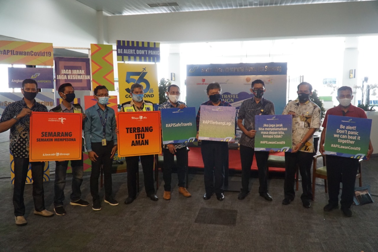 SEMARANG – Bandara Jenderal Ahmad Yani mengupayakan para calon penumpang agar terbang aman dan sehat yang digaungkan melalui acara “Safe Travel Campaign” bersama Lion Air Group.