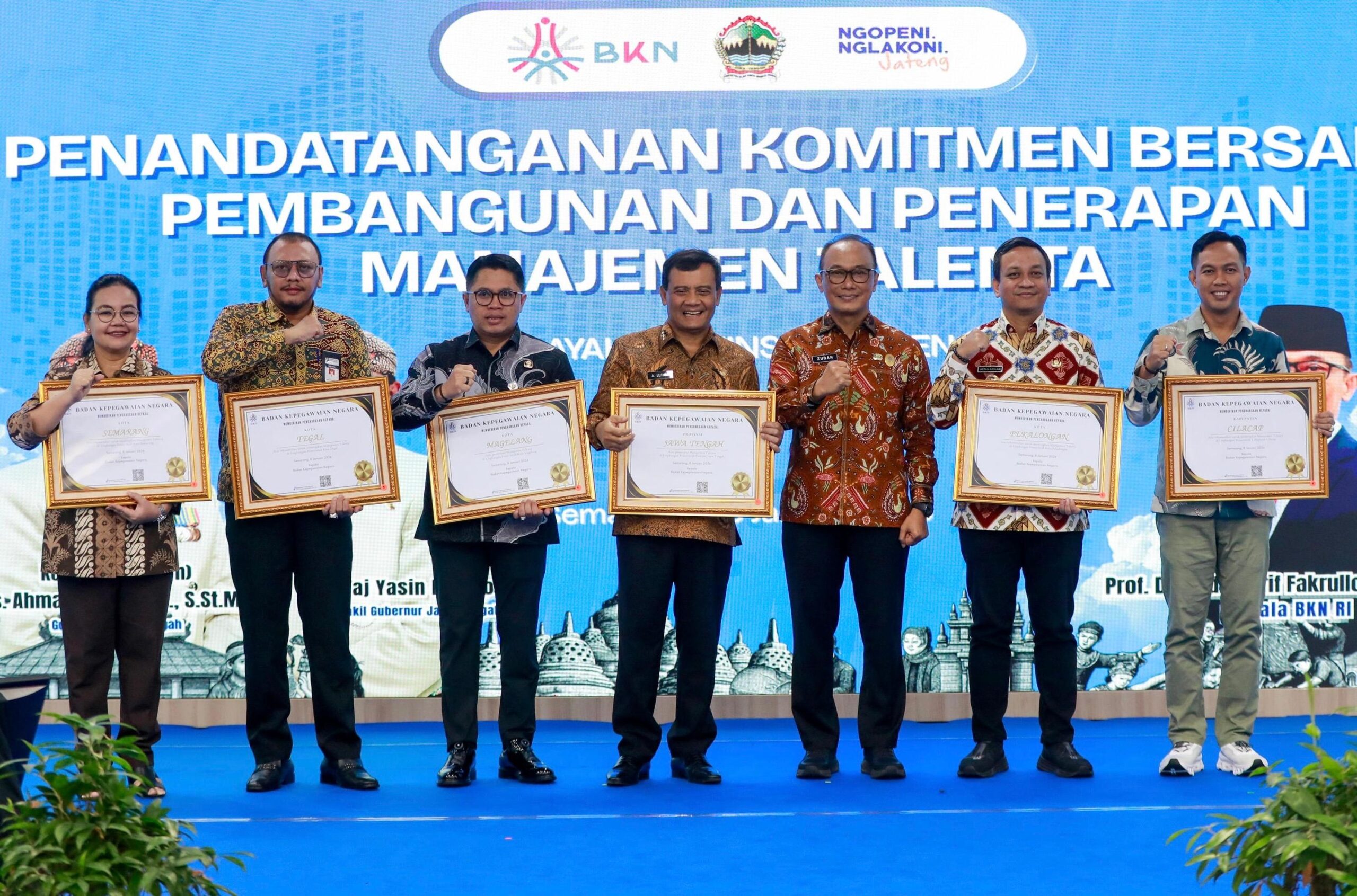 Komitmen penguatan manajemen talenta itu ditegaskan melalui penandatanganan kesepakatan bersama seluruh kepala daerah se-Jawa Tengah, yang disaksikan Kepala Badan Kepegawaian Negara (BKN) RI, Prof Zudan Arif, di Gradhika Bhakti Praja, Semarang, Kamis, 8 Januari 2026.