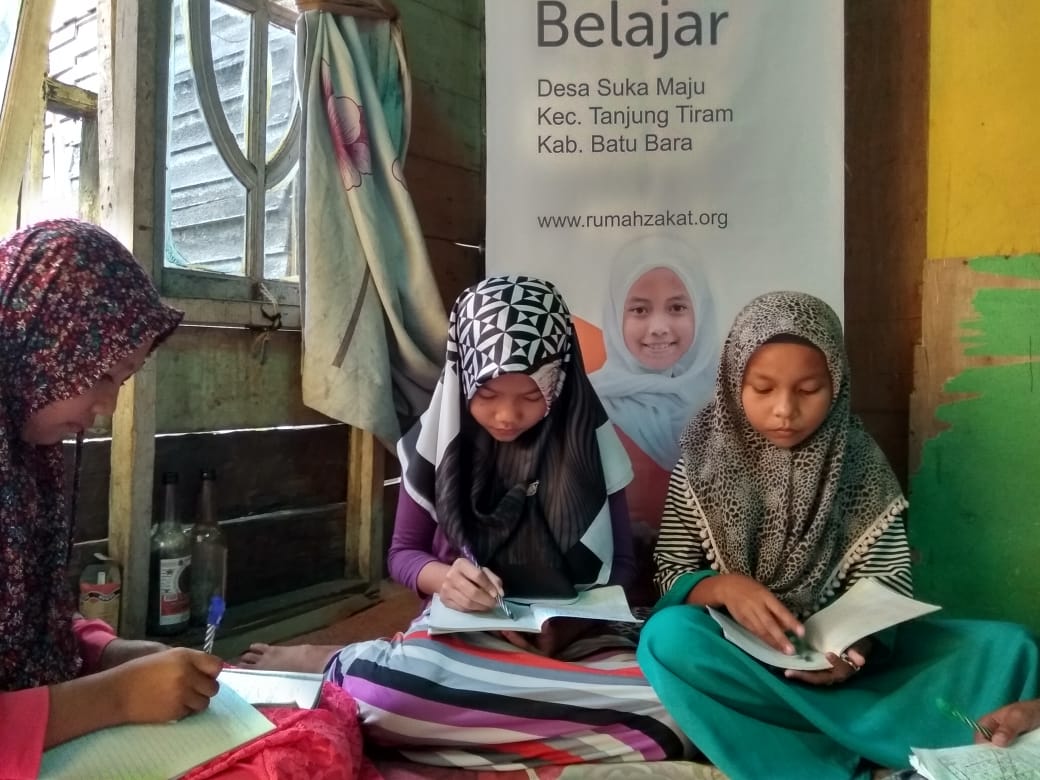 SUKAMAJU- Untuk memberantas buta huruf, Rumah Zakat mengadakan Program Rumah Belajar di Desa Sukamaju, Kecamatan Tanjung Tiram, Kabupaten Batu Bara. Program tersebut akan dibina secara rutin oleh fasilitator Rumah Zakat yang bertujuan untuk meningkatkan taraf pendidikan.