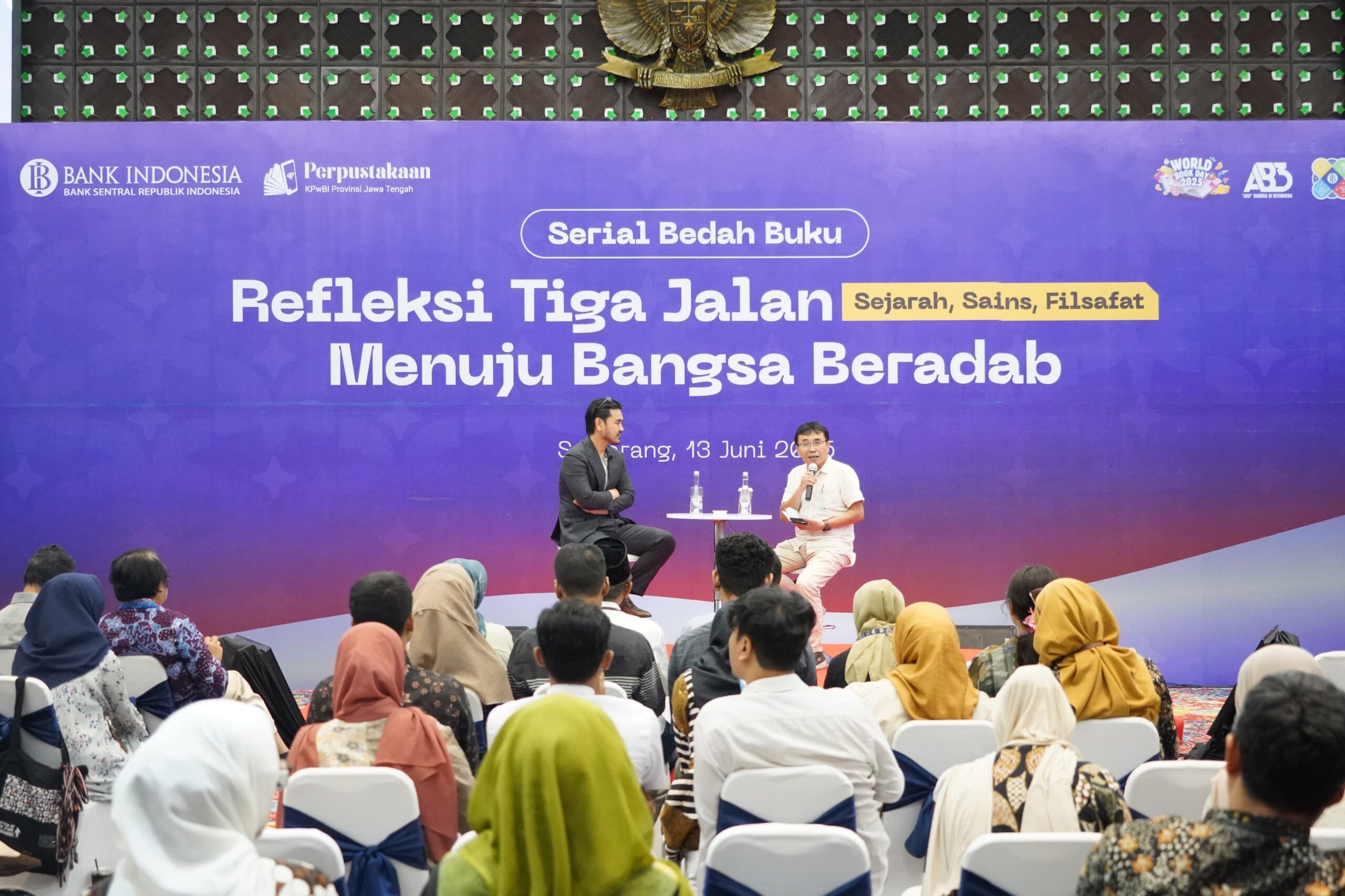 Semarang – Kantor Perwakilan Bank Indonesia Provinsi Jawa Tengah menyelenggarakan kegiatan perdana Serial Bedah Buku sebagai bagian dari peringatan World Book Day 2025, yang mengusung tema “Refleksi Tiga Jalan ‘Sejarah, Sains, Filsafat’ Menuju Bangsa Beradab” pada 13 Juni 2025 di Kantor BI Jateng.