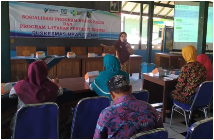 Sejalan dengan adanya ketentuan tersebut, sebagaimana diatur dalam Kepmenkes Nomor Hk.02.02/Menkes/514/2015 tentang Panduan Praktik Klinis Bagi Dokter Di Fasilitas Pelayanan Kesehatan Tingkat Pertama, BPJS Kesehatan Cabang Semarang dan Puskesmas Mranggen 2 bersama-sama memberikan edukasi kepada masyarakat di Kecamatan Mranggen Demak tentang Program Rujuk Balik dan Program Pelayanan Penyakit Kronis, Selasa (9/7/19).
