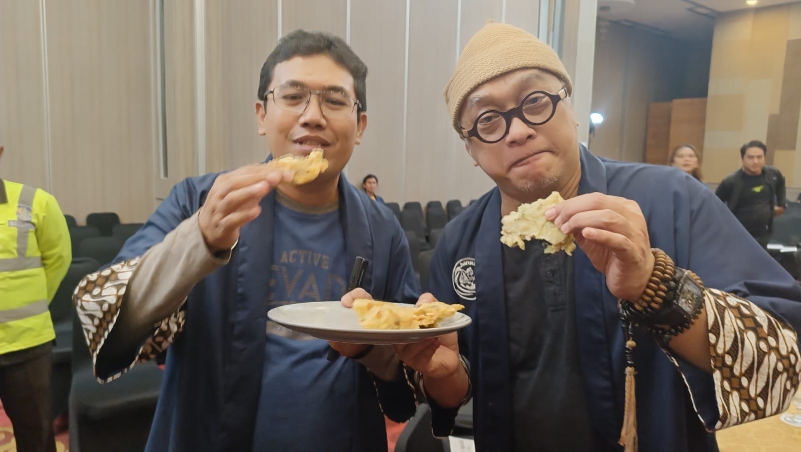 Dik Doank mengaku ini pengalaman baru bagi dirinya, “Rasanya gurih, enak dan hal baru bagi saya. Unik juga ada yang namanya tempe spirulina. Nanti pak Edi Sarwono jelaskan,” ujarnya sembari melirik ke General Manager PT Solusi Bangun Indonesia Tbk (SBI) itu.