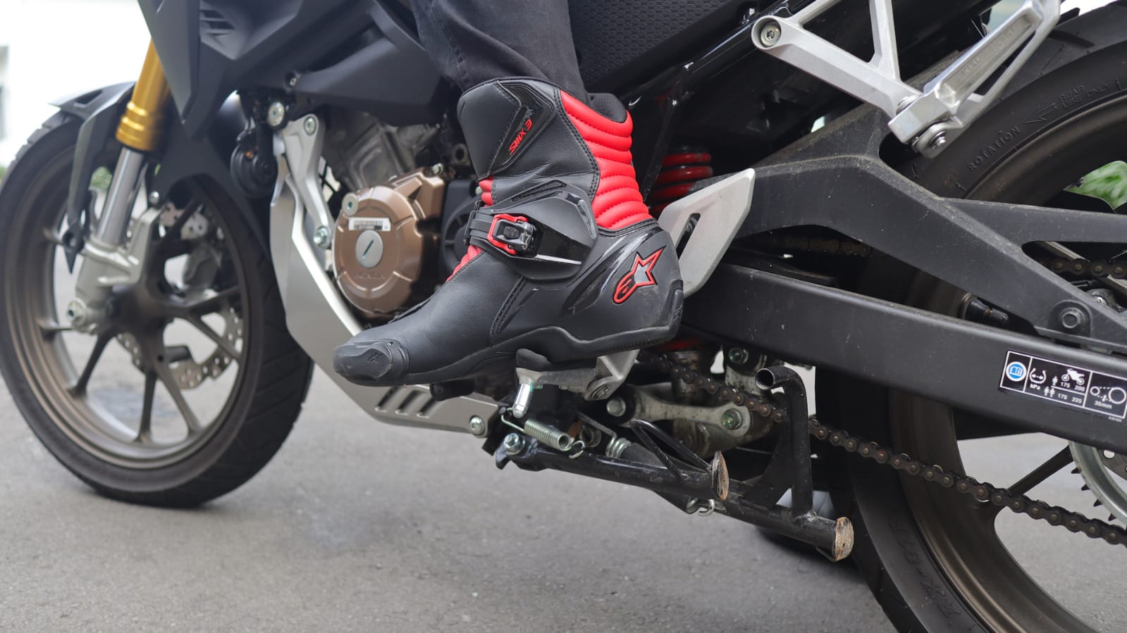 Menggunakan sepatu akan jauh lebih baik dalam hal perlindungan kaki saat berkendara, itupun disarankan agar memilih sepatu tanpa temali agar meminimalkan kejadian tersangkut atau sepatu lepas sehingga potensi bahaya yang lain tidak terjadi. Jadikan budaya mengutamakan keselamatan.