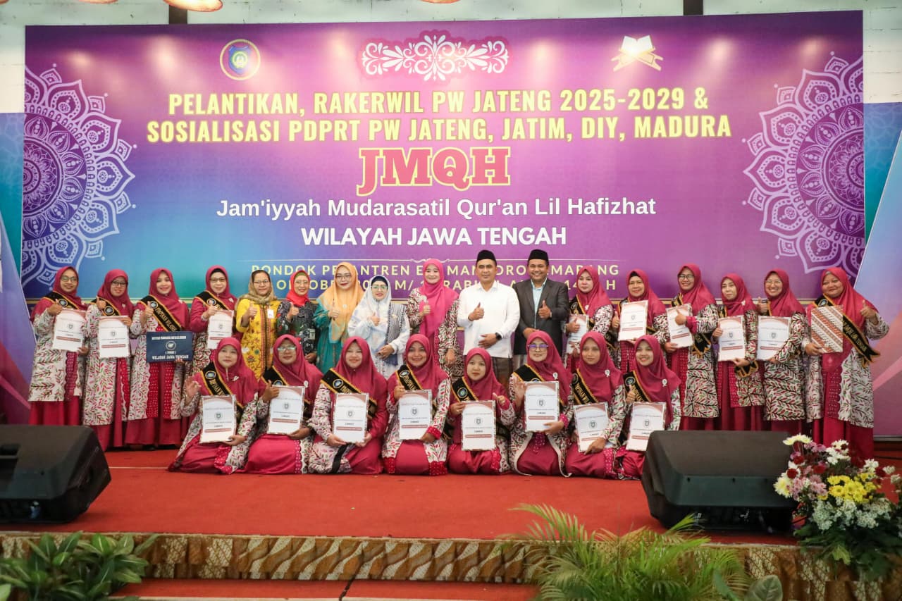 SEMARANG – Wakil Gubernur Jawa Tengah Taj Yasin Maiomen (Gus Yasin) menyebut, momen pelantikan dan Rapat Kerja Wilayah (Rakerwil) Pengurus Wilayah Jam’iyyah Mudarasatil Qur’an Lil Hafizhzat (JMQH) Jawa Tengah 2025–2029, sebagai ajang penuh keberkahan.