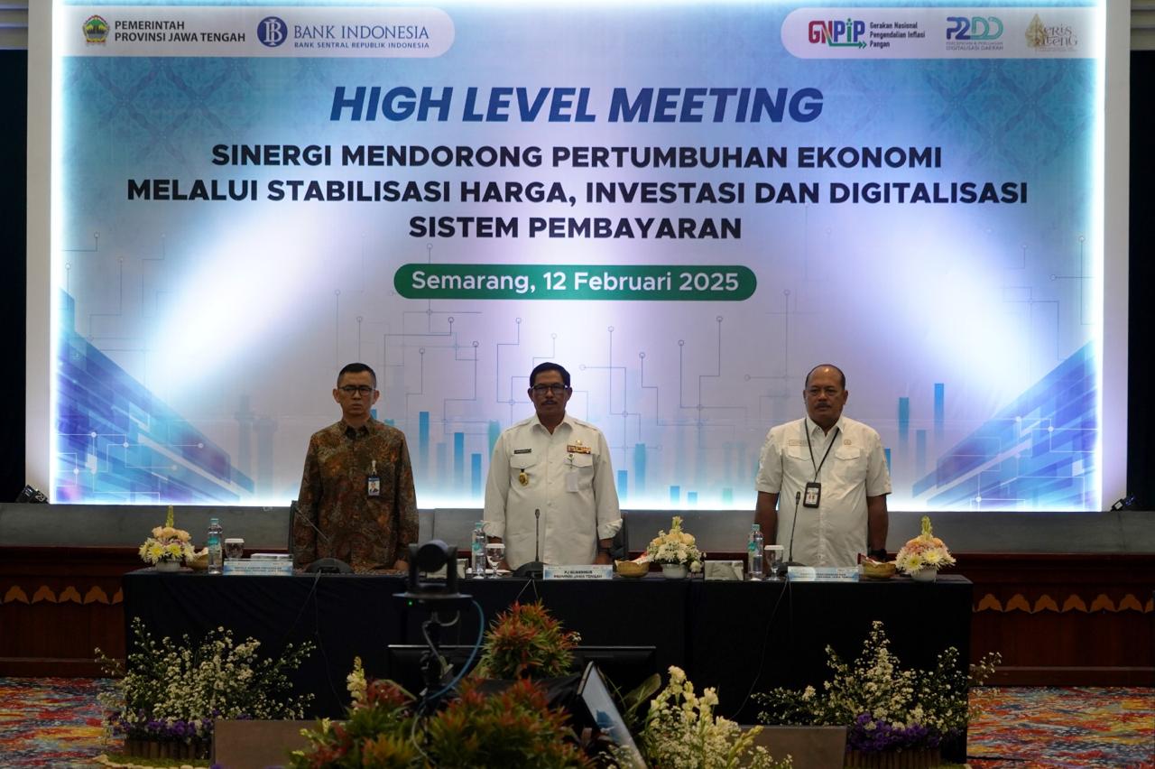 Semarang – Bank Indonesia Provinsi Jawa Tengah menggelar High Level Meeting (HLM) yang dihadiri oleh Pj. Gubernur Provinsi Jawa Tengah beserta seluruh Kepala Daerah di Jawa Tengah, anggota Tim Pengendalian Inflasi Daerah (TPID), Tim Percepatan dan Perluasan Digitalisasi Daerah (TP2DD), serta Koridor Ekonomi, Perdagangan, Investasi, dan Pariwisata (KERIS) Jawa Tengah, Rabu 12 Februari 2025.