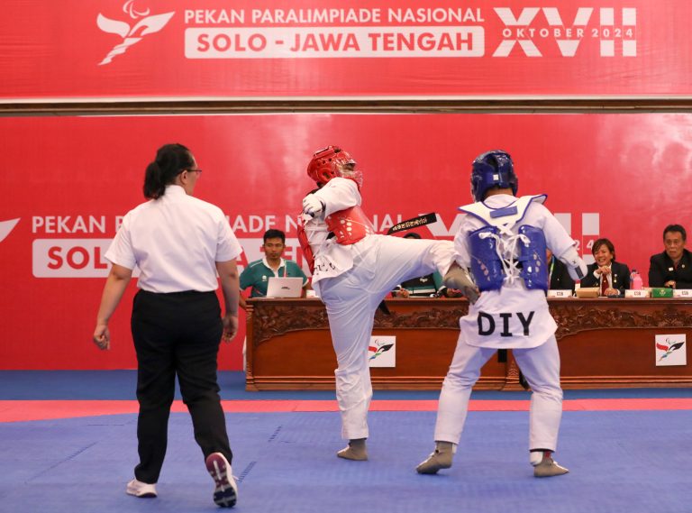 SURAKARTA – Muhammad Fachrudin menyumbang medali emas bagi kontingen Jateng, di cabang olahraga para taekwondo kategori K41 M-80, pada ajang Peparnas XVII. Sempat putus asa di awal laga, petuah almarhumah ibunda akhirnya membuatnya bangkit.