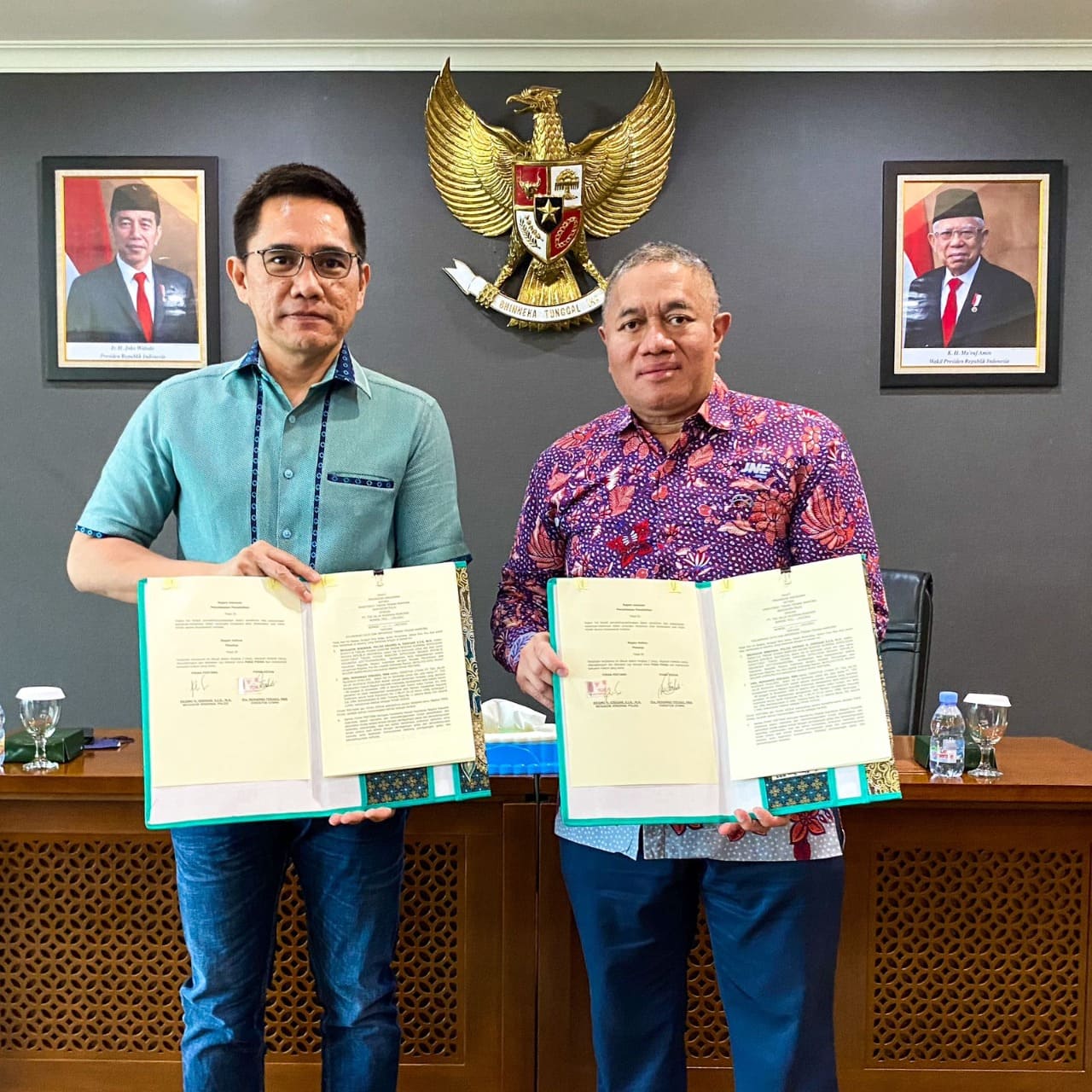 Direktur Tindak Pidana Narkoba (Dirtipidnarkoba) Bareskrim Polri Brigjen. Pol. Krisno H Siregar, S.I.K(kiri) dan Presiden Direktur JNE, M. Feriadi Soeprapto melakukan penandatanganan Kerjasama JNE dan Direktorat Tindak Pidana Narkoba Bareskrim POLRI.