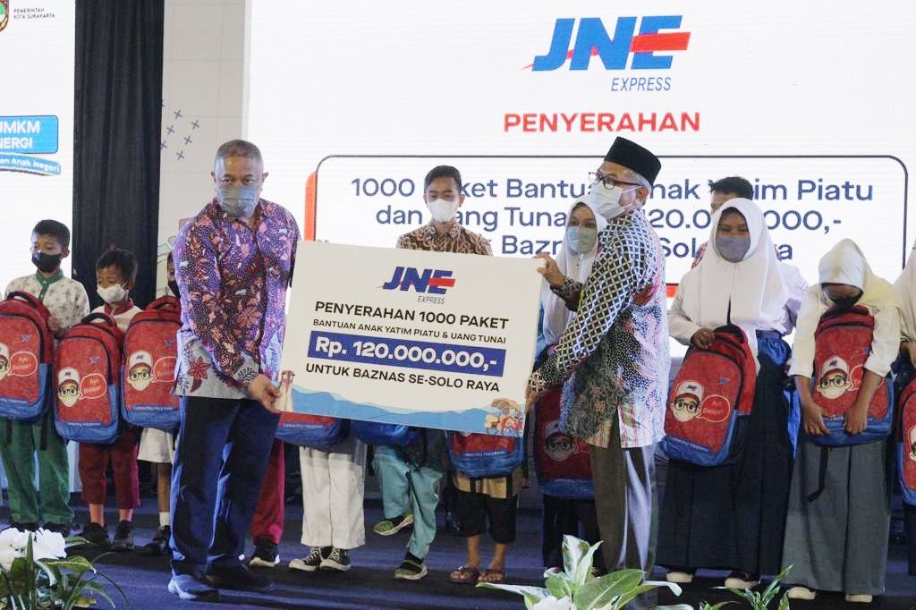Selain itu JNE juga memberikan santunan berupa uang tunai sebesar Rp. 220.000.000 dengan rincian Rp. 100.000.000 untuk anak yatim dan dhuafa serta Rp. 120.000.000 untuk Baznas Soloraya.
