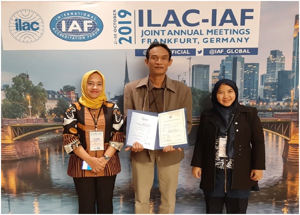 Penyerahan sertifikat pengakuan internasional tersebut diberikan dalam acara signing ceremony pada sidang ILAC-IAF Joint Annual Meetings kemarin, Selasa (29/10/2019).