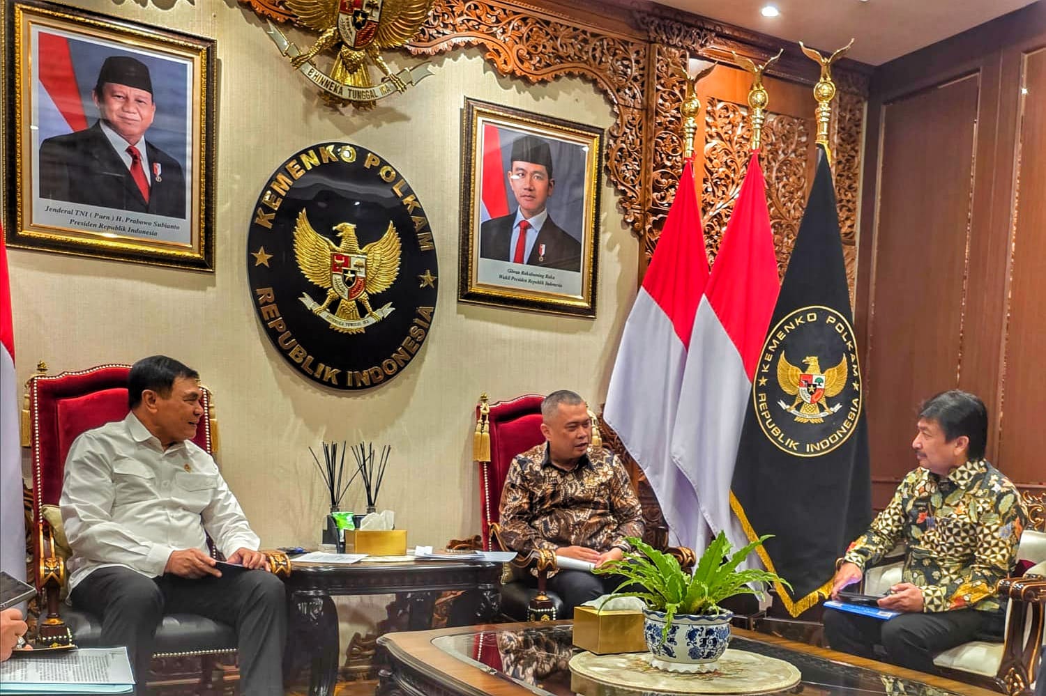 Turut mendampingi Menko Polkam dalam pertemuan tersebut Mayjen TNI Purwito Hadi selaku Deputi Bidang Koordinasi Pertahanan Negara dan Kesatuan Bangsa, Marsda TNI Eko Dono Indarto selaku Deputi Bidang Koordinasi Komunikasi dan Informasi, Irjen Pol. Desman Tarigan selaku Plt. Deputi Bidang Koordinasi Keamanan dan Ketertiban Masyarakat, serta Kolonel Inf. Honi Havana selaku Karo Humas Datin. Sementara itu, Menhub didampingi oleh Dirjen Perhubungan Darat Aan Suhanan, Dirjen Perhubungan Laut Muhammad Masyhud, Dirjen Perhubungan Udara Lukman F. Laisa, Dirjen Perkeretaapian Allan Tandiono, serta Kepala Badan Kebijakan Transportasi Hermanta.***