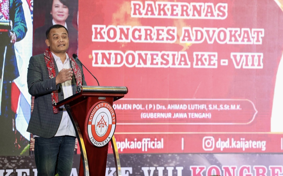 Gubernur Jawa Tengah Ahmad Luthfi yang memimpin bersama Wagub Taj Yasin Maimoen(Gus Yasin), menegaskan, terciptanya keamanan, ketertiban, dan kepastian hukum menjadi prasyarat mutlak dalam membangun wilayah yang maju dan sejahtera. Hal itu ia sampaikan saat menghadiri Rapat Kerja Nasional (Rakernas) ke-VIII Kongres Advokat Indonesia (KAI) di Metro Park View Hotel, Kota Semarang, Jumat (17/4/2026).