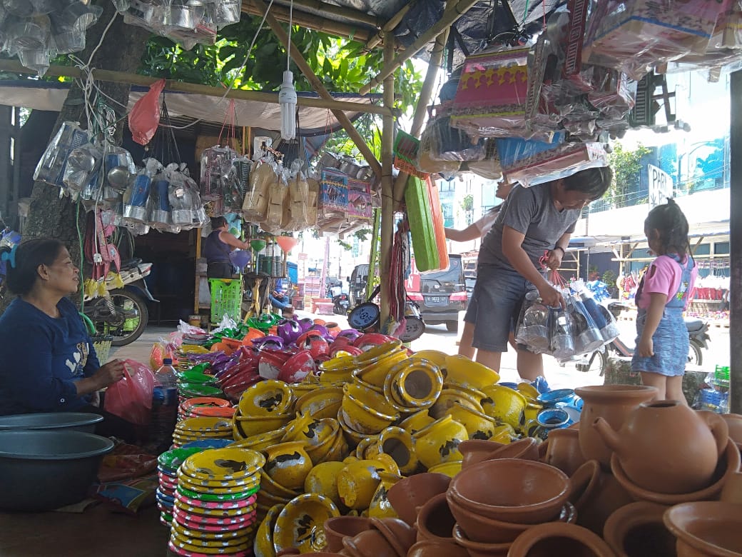 “Ini barang dagangan gerabah mainan kebanyakan diambil dari Mayong, Jepara. Saya beli sedikit-sedikit dan sudah pesan jauh-jauh hari. Total saya beli dagangan saya ini sekitar Rp 3 juta sudah dapat satu pick up berupa gerabah mainan untuk anak seperti, mangkuk, piring, celengan dan lain-lain yang saya beli,” imbuhnya.