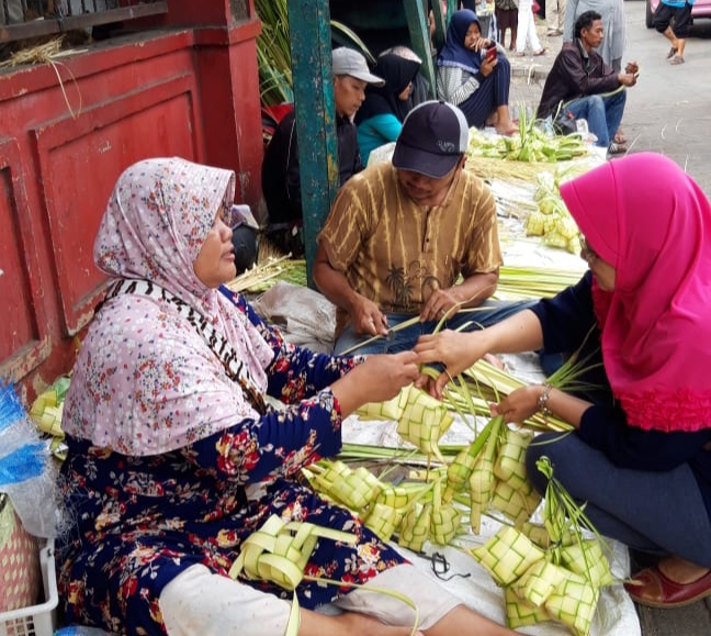 Pedagang Selongsong Ketupat Dadakan Mulai Padati Pasar Karangayu