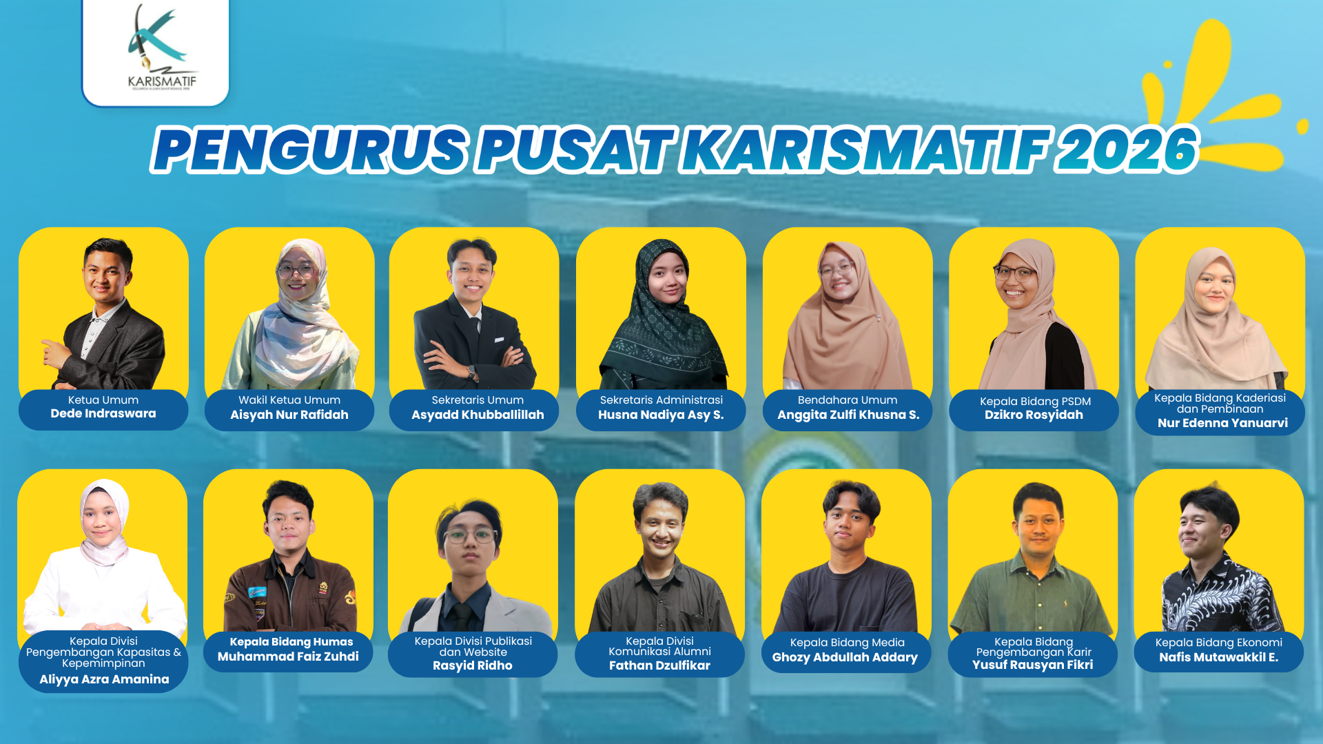 Secara historis, Karismatif telah melewati berbagai fase kepemimpinan yang dinamis. Dimulai dari tongkat estafet pertama oleh Zaki Mubarak Izzudin (Angkatan 1), dilanjutkan oleh Akbar Fasya (Angkatan 2), kemudian beralih pada tahun 2017 kepada Muhammad Hanif Ibrahim (Angkatan 4), diteruskan oleh M. Dian Pratama, hingga kini amanah besar tersebut berada di pundak Dede Indraswara (Angkatan 8).