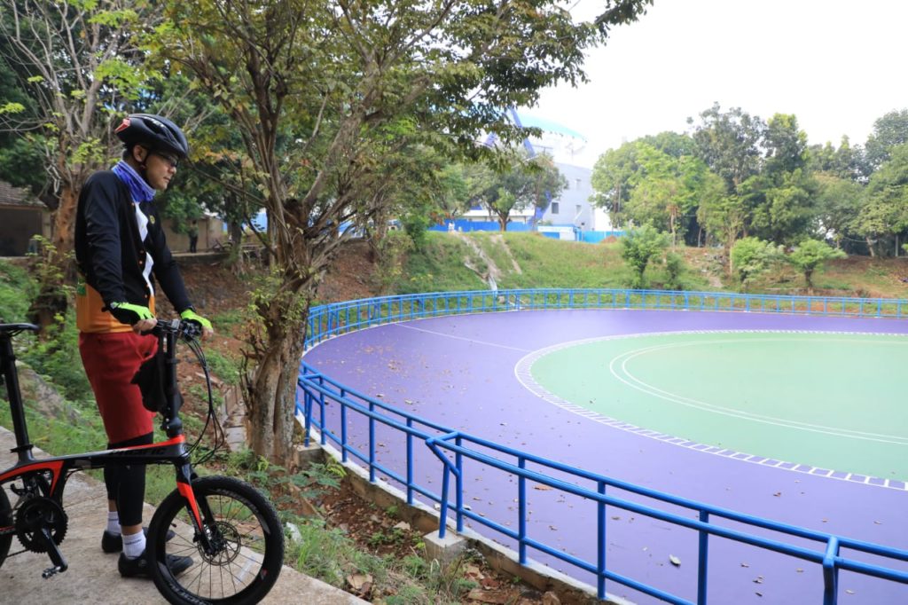 Sambil gowes pagi, Ganjar mampir untuk melihat progres pembangunan kolam renang, lapangan tenis dan lapangan sepatu roda di GOR Jatidiri. Satu persatu venue dicek dengan detail, termasuk kualitas bangunan.