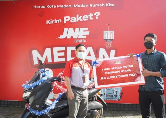 Pelaksanaan pengundian JLC Lucky Draw sudah dilakukan pada 14 Januari 2022 yang lalu, program ini memberikan banyak kesempatan kepada seluruh member JLC untuk meraih beragam hadiah menarik. Wahyu Abdillah, adalah salah satu member JLC asal Medan yang beruntung mendapatkan 1 unit Motor Yamaha All NMAX 15. Pemilik usaha Minyak Karo (minyak tradisional) yang berbahan dasar jahe dan rempah-rempah ini, mulai mempercayakan kirimannya dengan JNE sejak awal mulai merintis bisnisnya dan menjadi member JLC dari tahun 2018 lalu.
