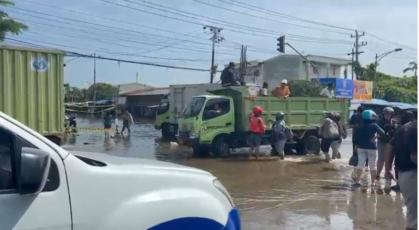 Melihat ada bantuan tersebut, pengguna jalan langsung antusias dan naik ke bak. Mereka merasa hal itu meringankan bebannya, karena tidak perlu susah-susah menerabas jalan terendam banjir.