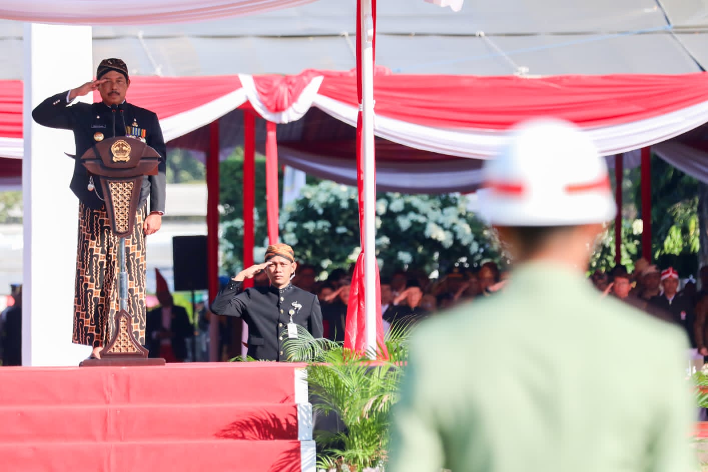 SEMARANG – Penjabat Gubernur Jawa Tengah Nana Sudjana membeberkan beberapa capaian positif provinsi ini, pada upacara pengibaran bendera peringatan Hari Ulang Tahun (HUT) ke-79 Republik Indonesia (RI) Tahun 2024.