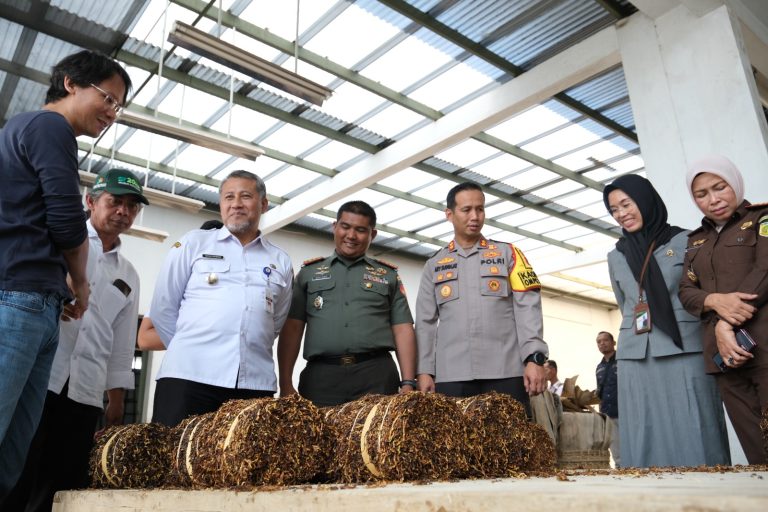 TEMANGGUNG – Penjabat (Pj) Bupati Temanggung Hary Agung Prabowo beserta Forkopimda, memantau penyerapan tembakau di beberapa gudang perwakilan pabrik rokok. Pantauan dilakukan di gudang perwakilan PT Djarum, PT Nojorono dan PT Wismilak, Rabu (4/9/2024).