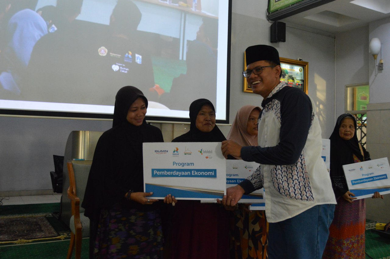 Dalam kesempatan tersebut juga dilakukan penyerahan bantuan secara simbolis kepada beberapa penerima manfaat. Maryam adalah salah satu penerima manfaat yang berjualan bensin eceran.