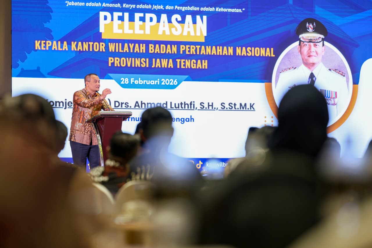 Penegasan itu disampaikan Ahmad Luthfi saat menghadiri pelepasan Kepala Kanwil ATR/BPN Jawa Tengah, Lampri, di Hotel Gumaya, Kota Semarang, Sabtu malam, 28 Februari 2026. Lampri kini dipercaya menjabat Direktur Jenderal Pengendalian dan Penertiban Tanah dan Tata Ruang Kementerian ATR/BPN. Sementara posisi yang ditinggalkan diisi Kartono Agustiyanto sebagai Pelaksana Tugas (Plt) Kepala Kanwil ATR/BPN Jawa Tengah.