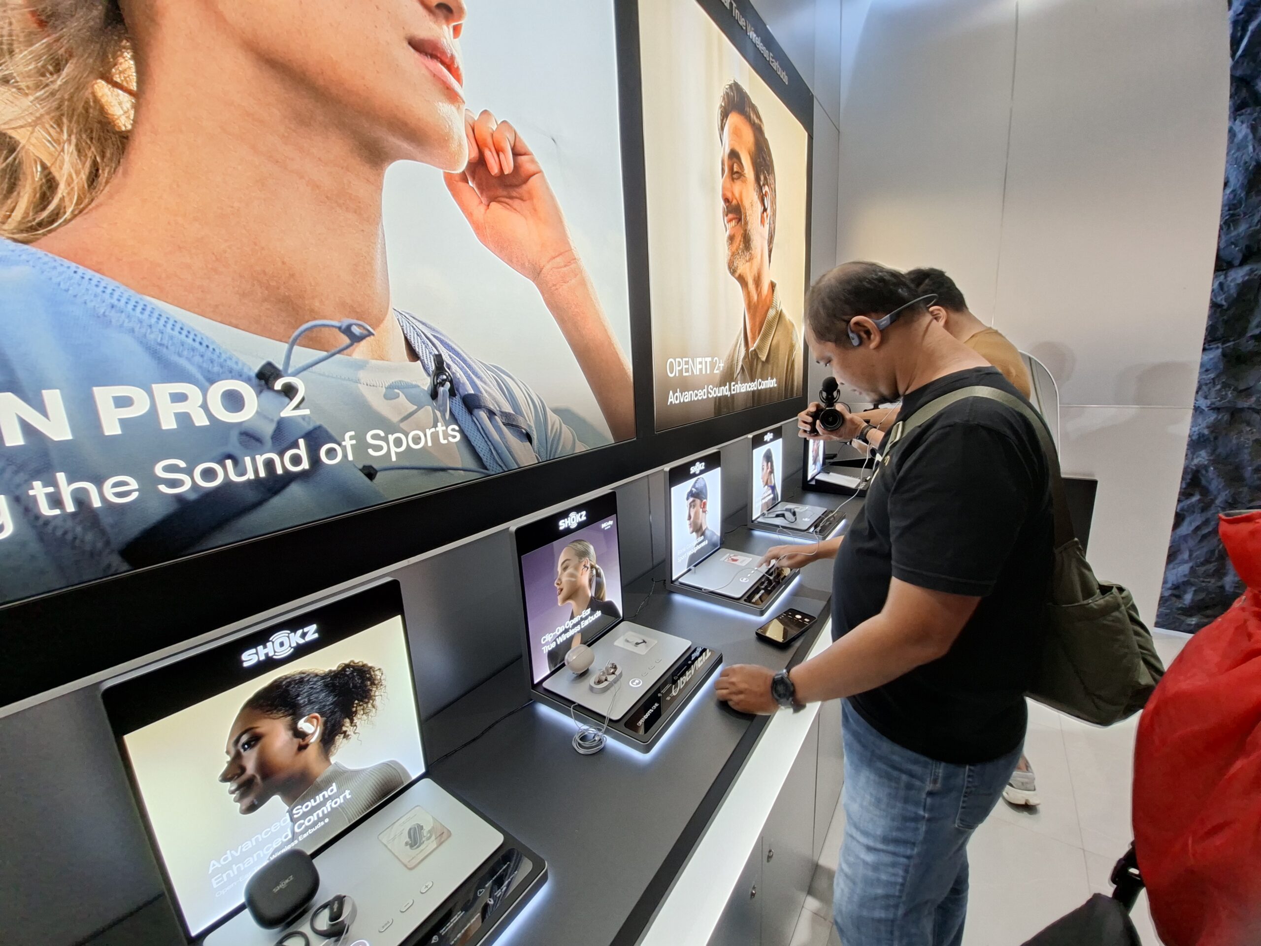 Di gerai ini, SHOKZ menghadirkan tiga kategori produk utama, yakni seri OpenRun, OpenFit, serta lini terbaru yang mengusung konsep lifestyle dan fashion.