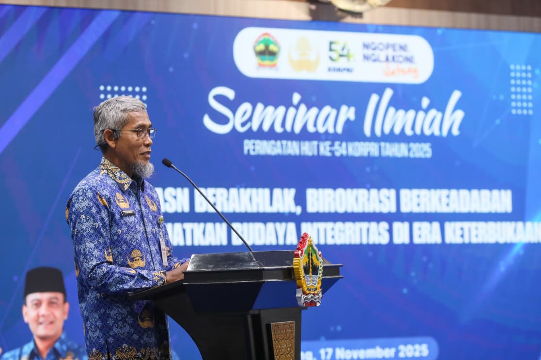 ”Saya sering menyampaikan, revolusi mental ASN yang pertama itu mengingat kembali di mana posisinya. Bahwa posisi ASN itu pelayan bukan tuan,” katanya saat membuka Seminar Ilmiah Peringatan HUT ke-54 Korpri Tahun 2025, di Gedung Gradhika Bhakti Praja, Kota Semarang, Senin, 17 November 2025.