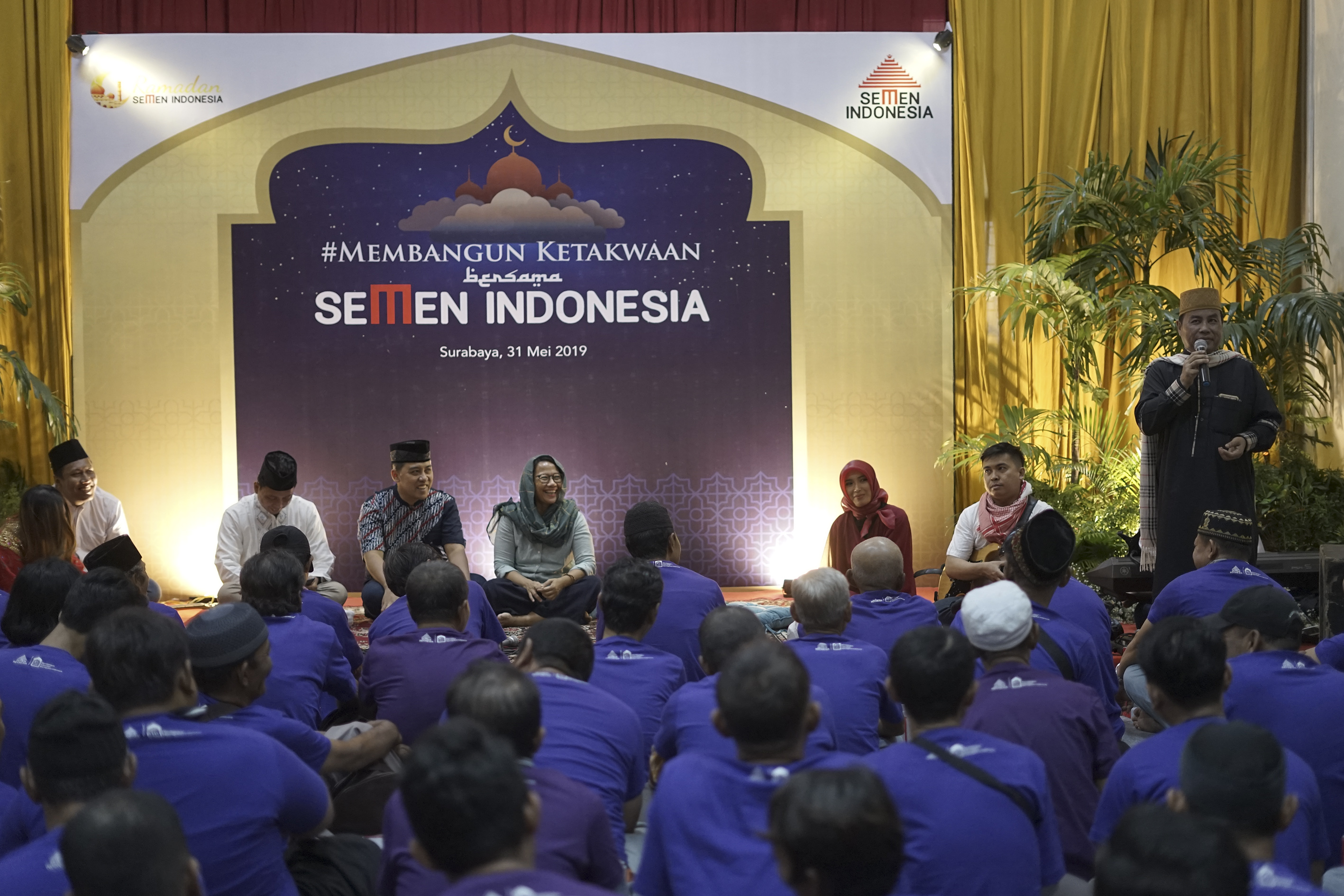 Rangkaian kegiatan #MembangunKetakwaan diawali dengan tausiyah yang dilanjutkan dengan penyerahan bingkisan lebaran oleh SVP of SMO & Communication Semen Indonesia, Ami Tantri didampingi Kepala Departeman Komunikasi Perusahaan Sigit Wahono dan Ketua PWI Jawa Timur Ainur Rohim.