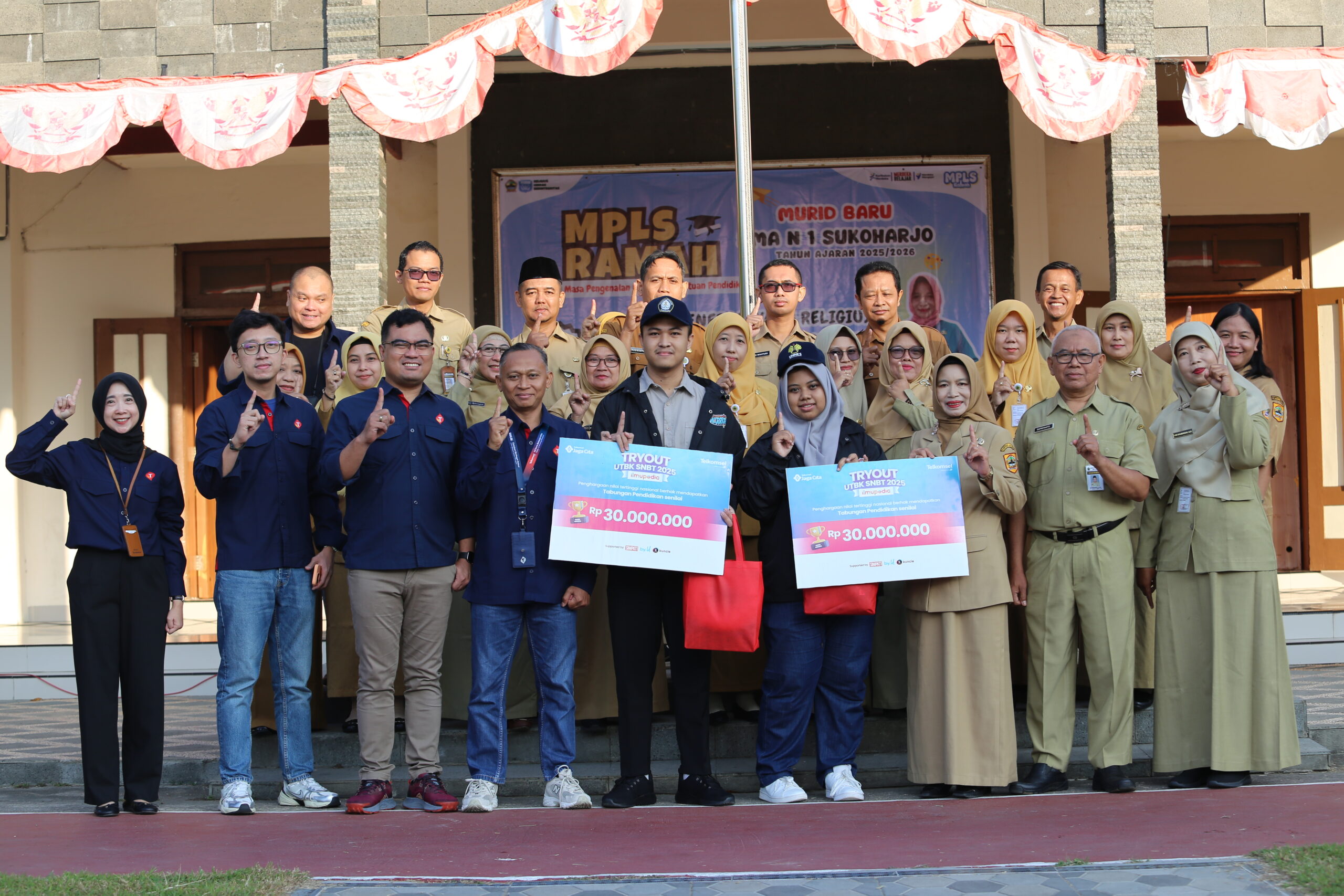 Sukoharjo – Telkomsel kembali menegaskan komitmennya dalam mendukung pendidikan inklusif berbasis digital di Indonesia. Setelah mengumumkan tujuh pemenang nasional (Top Scorer) dari program Ilmupedia Tryout UTBK 2025 pada Juni lalu, hari ini Telkomsel menyerahkan secara simbolis bantuan pendidikan senilai total Rp60 juta kepada dua siswa (alumni) asal SMAN 1 Sukoharjo: Alif Andreyka dan Anggra Rina Wijayanti.