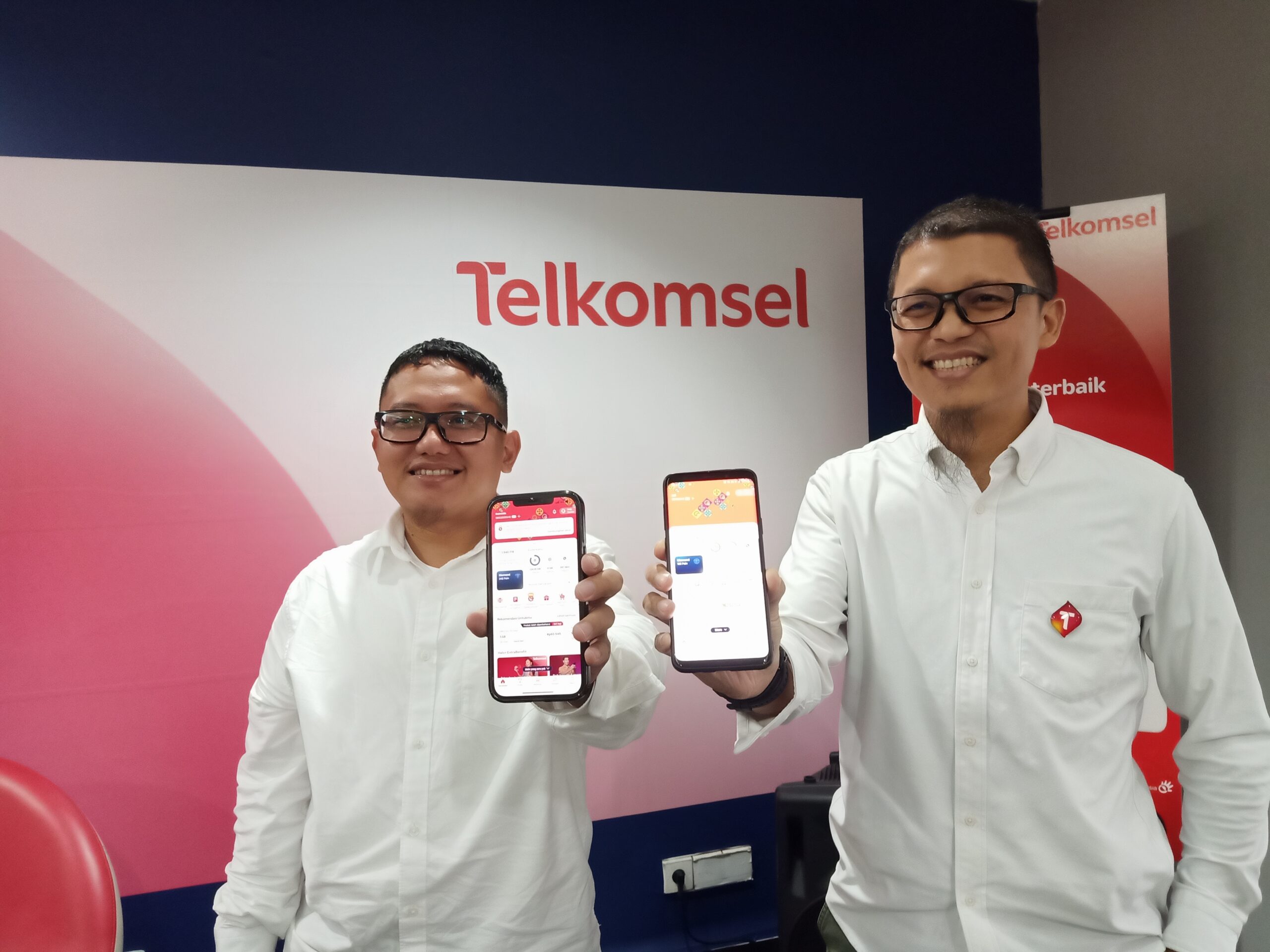 General Manager Consumer Sales Region Jawa Tengah & DIY, Gamada(kiri) dan General Manager Network Operations and Productivity Telkomsel Jawa Tengah and DIY, Adi Wibowo saat menunjukkan aplikasi Mytelkomsel.