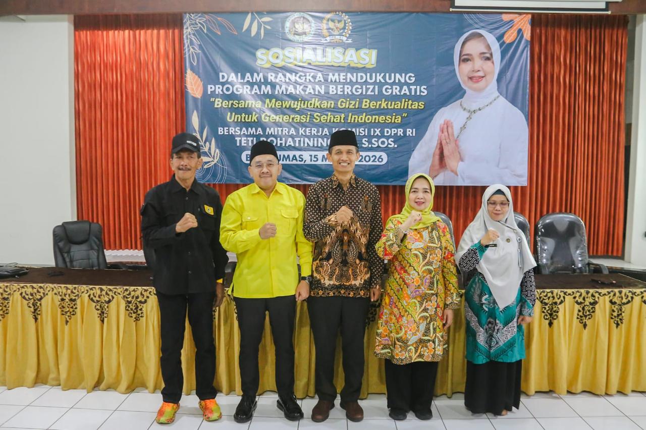 Banyumas – Anggota Komisi IX DPR RI, Teti Rohatiningsih, menghadiri kegiatan sosialisasi Program Makan Bergizi Gratis (MBG) bersama mitra kerja yang digelar pada Minggu (15/3) di Balai Kelurahan Kranji, Kecamatan Purwokerto Timur, Kabupaten Banyumas. Kegiatan ini dihadiri masyarakat serta menghadirkan narasumber dari unsur tenaga gizi dan pemerintah daerah.