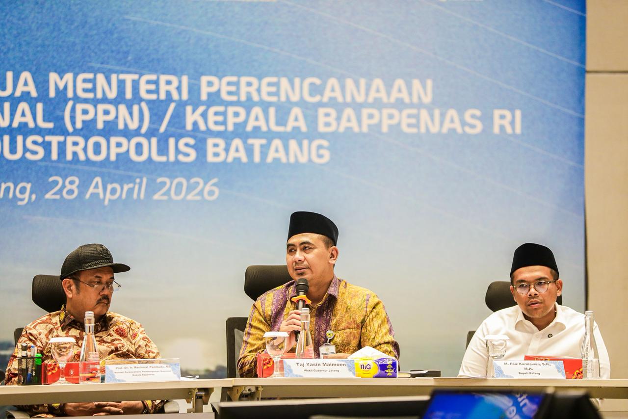 Harapan itu disampaikan Wakil Gubernur Jawa Tengah Taj Yasin Maimoen (Gus Yasin), mewakili Gubernur Jateng Ahmad Luthfi, saat menyampaikan paparan dalam Kunjungan Kerja Menteri Perencanaan Pembangunan Nasional (PPN)/ Kepala Bappenas RI di KEK Industroplis Batang, Selasa, 28 April 2026.