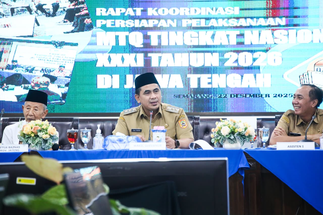 Hal itu disampaikan Gus Yasin, sapaan akrabnya, saat memimpin Rapat Koordinasi Persiapan Pelaksanaan MTQ Tingkat Nasional XXXI (ke-31) Tahun 2026 di Jawa Tengah, di komplek gubernuran Semarang, Senin, 22 Desember 2025.
