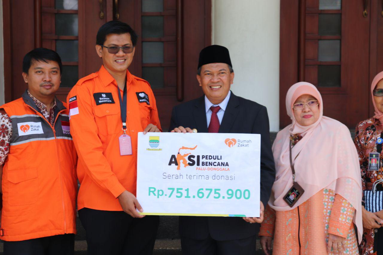 BANDUNG– Sebagai bentuk kepedulian terhadap korban gempa dan tsunami Palu dan Donggala, Walikota Bandung, Oded Muhammad Danial menyerahkan donasi melalui Rumah Zakat pada Jumat (5/10). Penggalangan dana yang dilakukan oleh pemerintah Kota Bandung di lingkungan ASN (Aparatur Sipil Negara) tersebut terkumpul sebanyak Rp751.675.000.