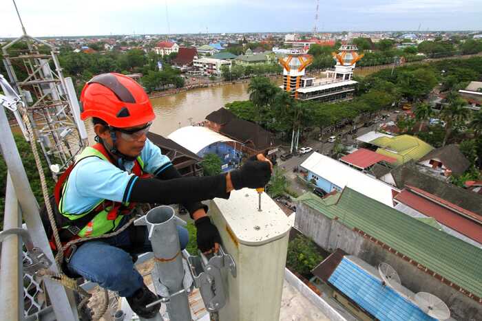 – CEK JARINGAN- Teknisi XL Axiata sedang melakukan pemeriksaan jaringan menjelang puncak Haul Akbar Guru Sekumpul ke-18 di sekitar kawasan wisata Siring Menara Pandang, Kota Banjarmasin, Kalimantan Selatan, Jumat (20/1/2023). Foto : ist/zonapasar.com